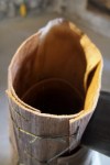 Jar with single lug and kind of a spout… , sewed coconut palm bark, 35x32x105 cm