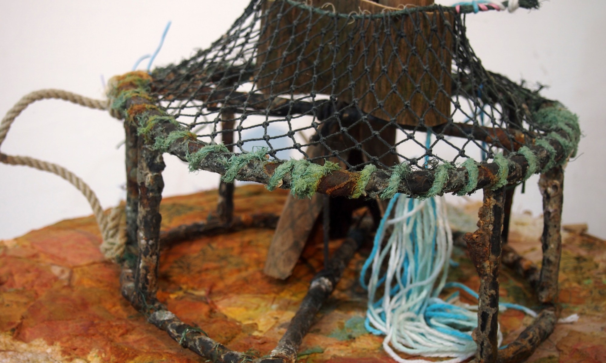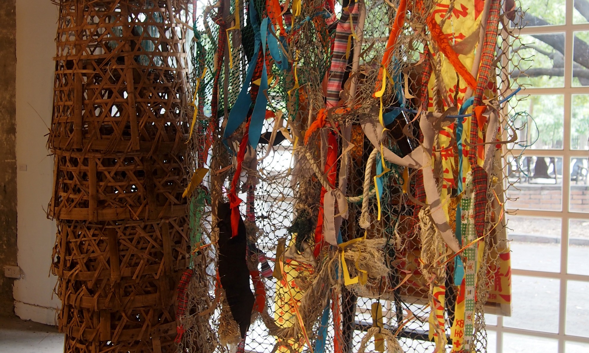 Gone fishing... , joss paper, fishnets and other stuff from the seaside, variable size K.A.T. artist in residence program, Kaohsiung, Taiwan, 2014.