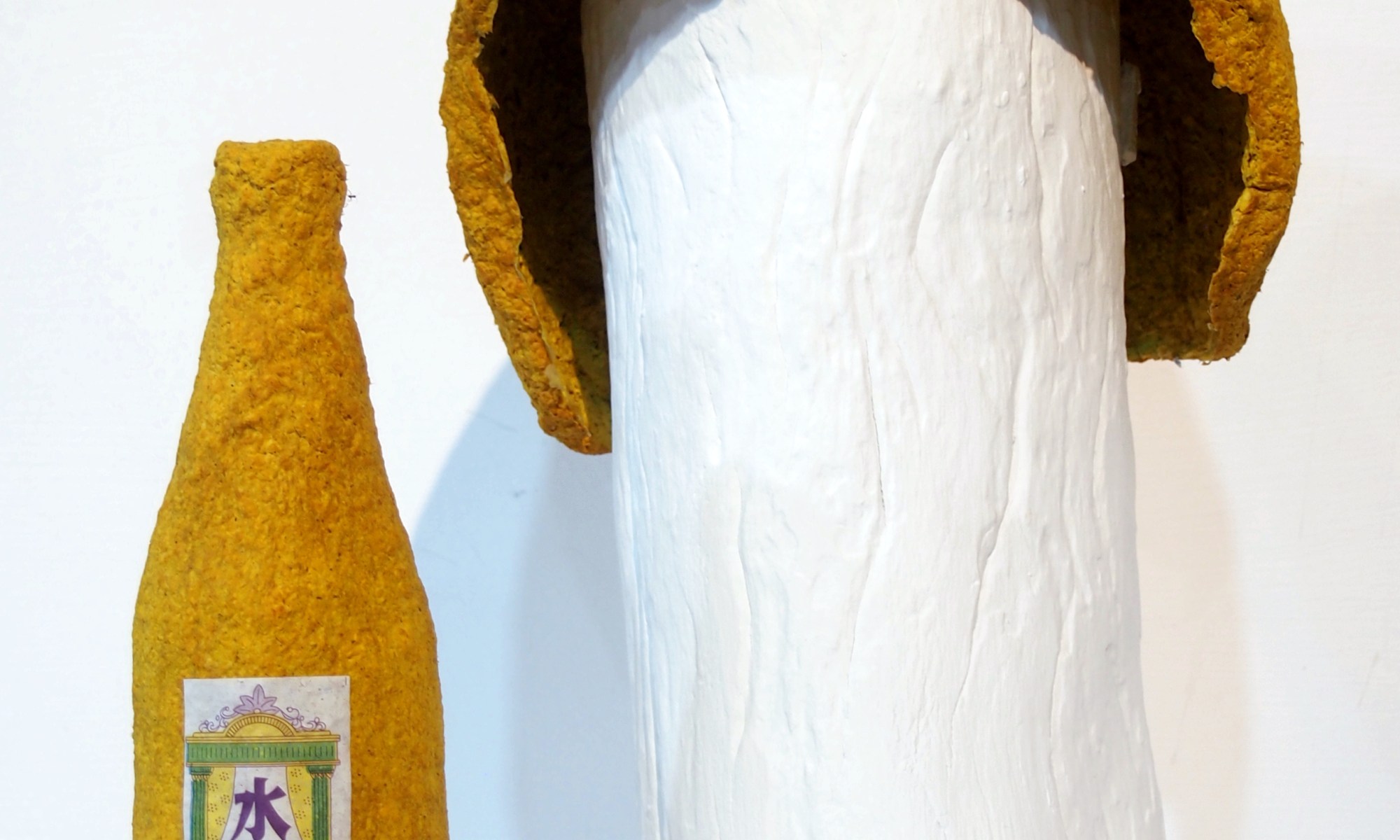 Jar with single lug and kind of a spout... , sewed coconut palm bark, 35x32x105 cm K.A.T. artist in residence program, Kaohsiung, Taiwan, 2014.