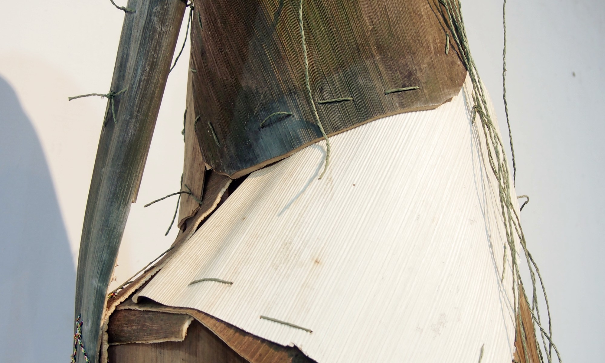 Vaso impossibile, sewed coconut palm bark, 45x38x107 cm K.A.T. artist in residence program, Kaohsiung, Taiwan, 2014.