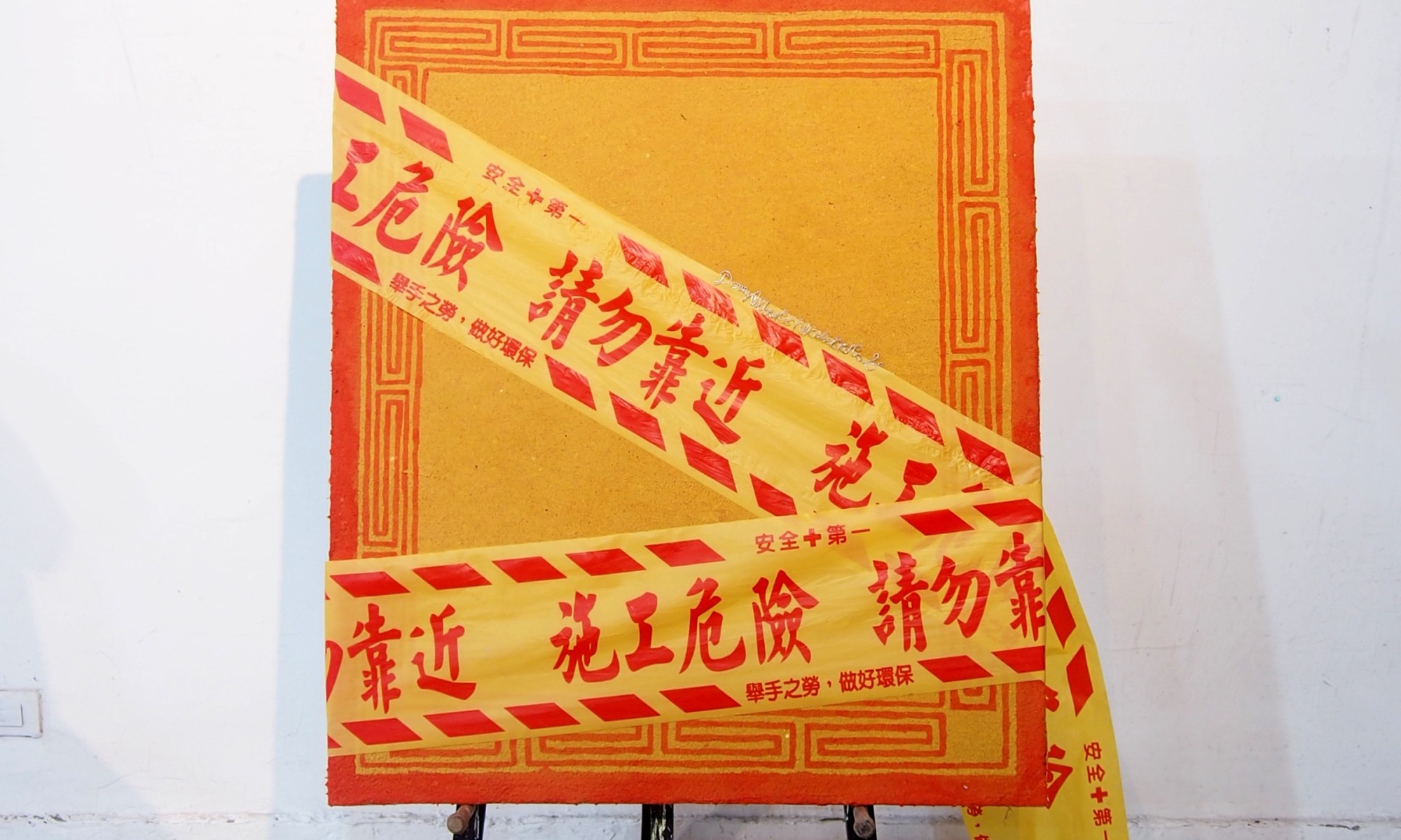 Work in progress manifesto, joss paper, plastic stripe and bent wire K.A.T. artist in residence program, Kaohsiung, Taiwan, 2014.