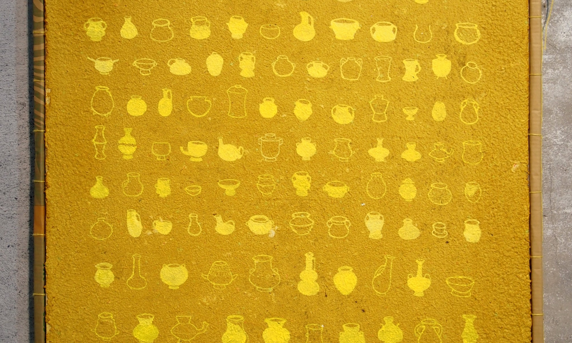 Math homework, mixed media on mosquito net, 81x87 cm. K.A.T. artist in residence program, Kaohsiung, Taiwan, 2014.